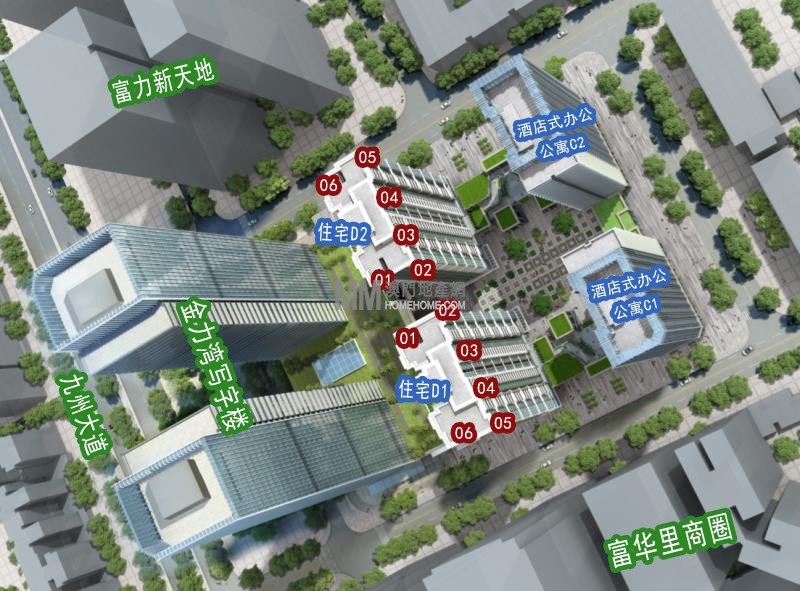 🍀楼栋总数:2栋住宅+2栋酒店式办公+2栋写字楼